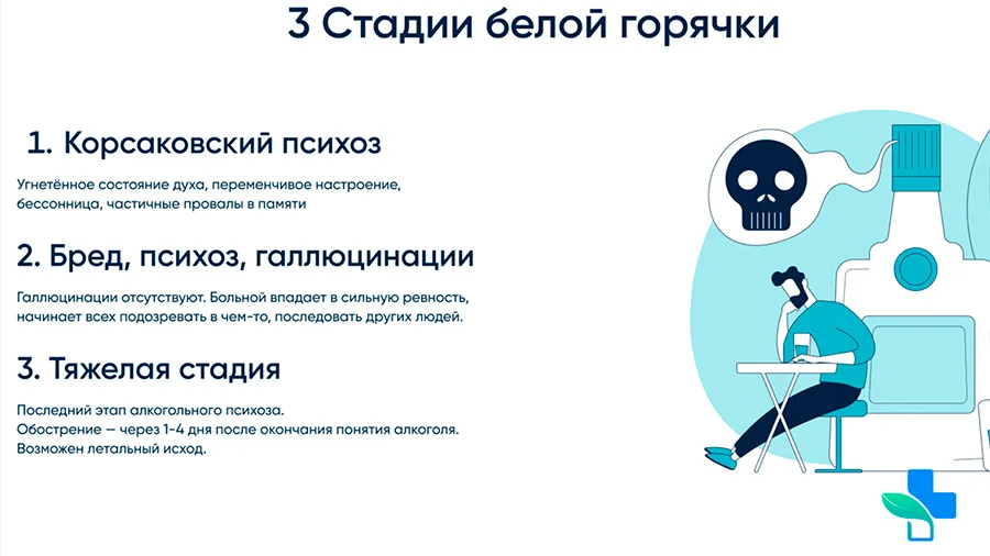 Очень важно, что вы осознали серьёзность проблемы и сделали выводы. Даже один эпизод белой горячки — это сигнал о том, что употребление алкоголя достигло опасного уровня. Мы всегда готовы помочь вам на пути к трезвой и здоровой жизни!